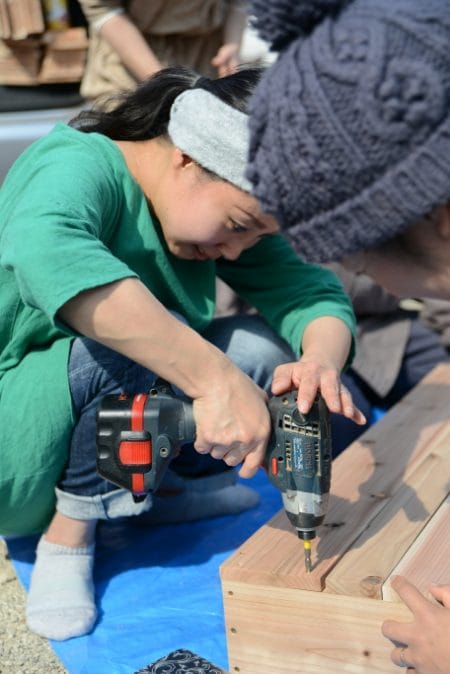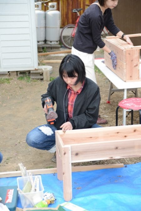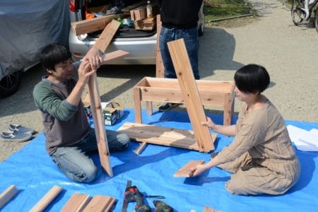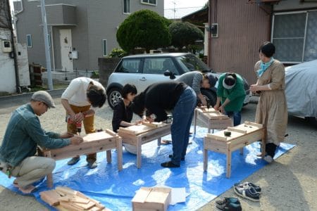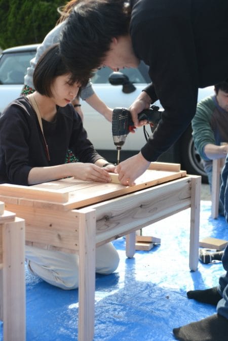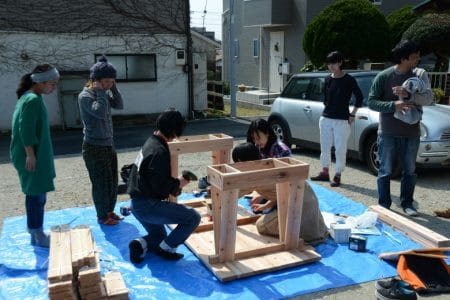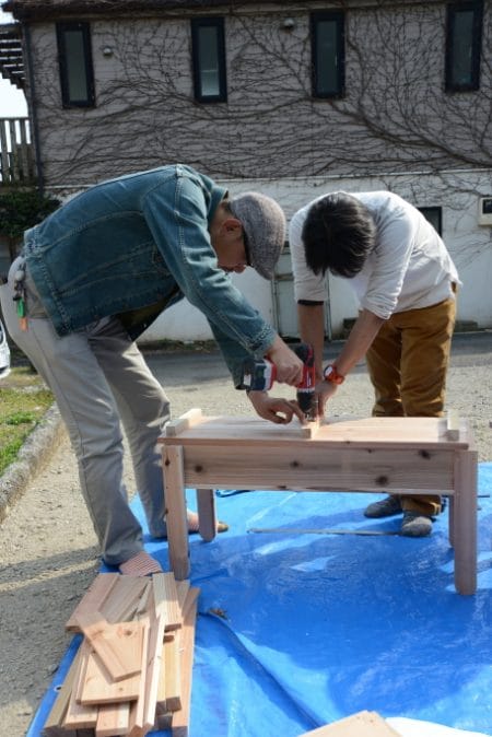 今回は、みんなで作ったこのお店で使用する家具作りをしました。