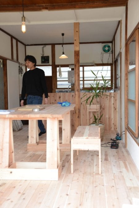 今回の家具作りの講師はKUMIKI PROJECT共同メンバーの一員、湊哲一(みなとのりかず)さん。
