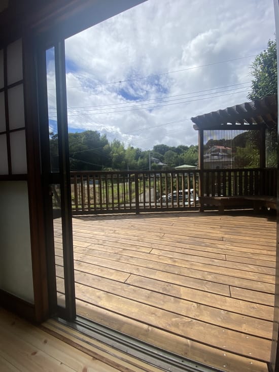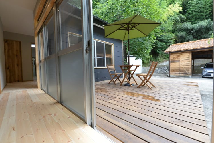 外部から視線が入らない立地ですので、外のテラスでもゆっくりと寛ぐ事ができます。