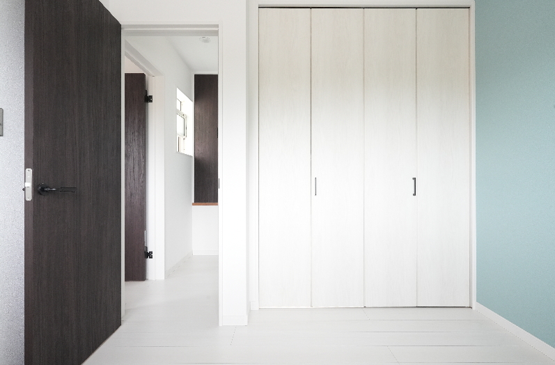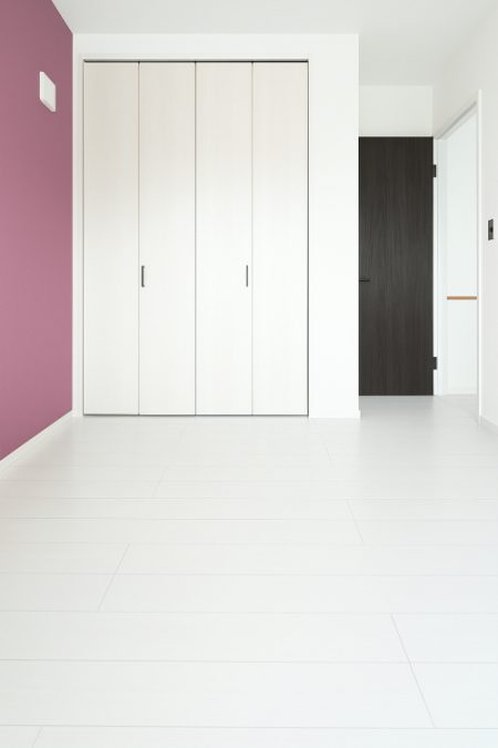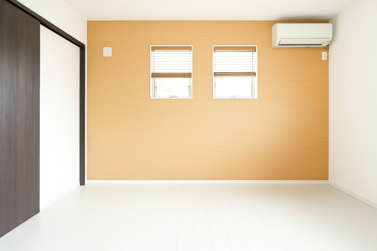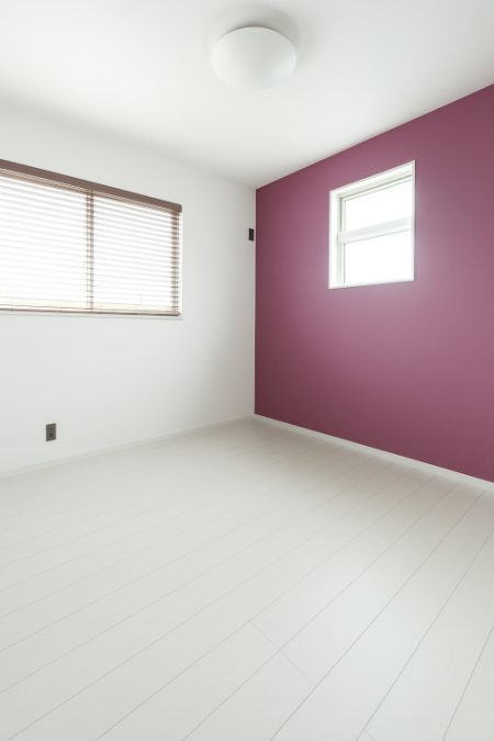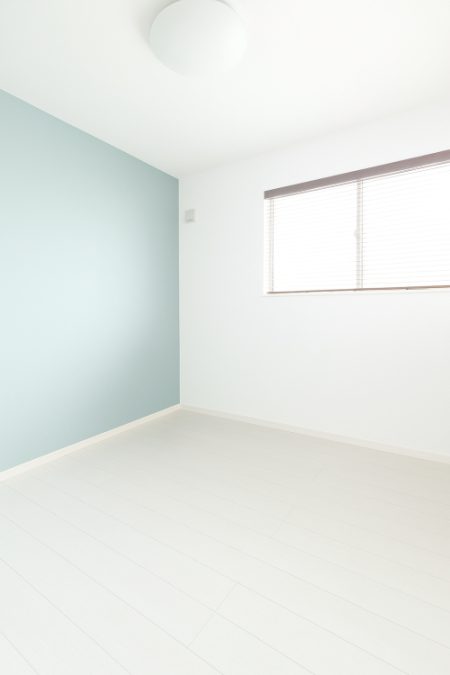 2階東南角部屋(8帖)。2階の3部屋はそれぞれアクセントクロスの色が異なり、遊び心がございます。