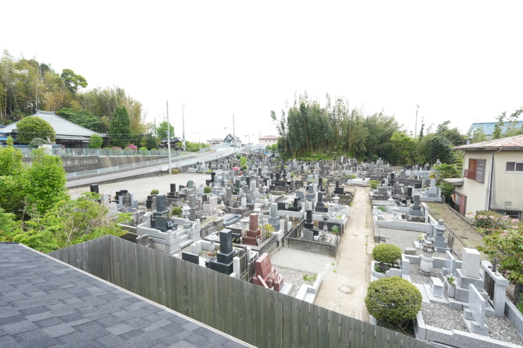 2階からの眺望。南側に墓地が隣接しているため、視界が開けており陽当たり抜群。心安らぐ静かな環境です。