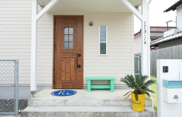 白壁と琉球ブロックが映える、カリフォルニア風デザイン。