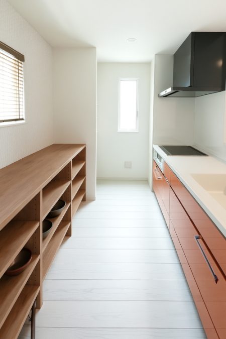 光が差し込む明るいキッチンは、収納たっぷり&すっきり設計。動線も良く、毎日の家事がスムーズにこなせる快適空間です。