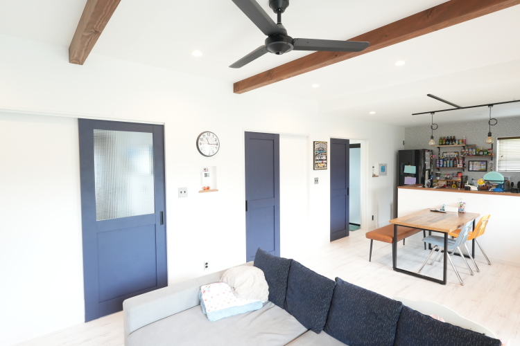 ネイビーの扉の色がアクセントになっていて素敵です。
