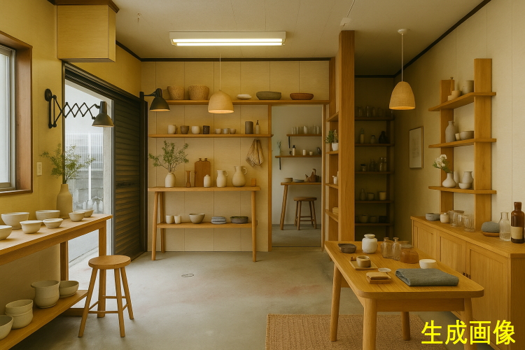 土間のある店舗と住居が繋がっています。店舗兼住居はもちろん、ショップ+アトリエ、ギャラリー+住まいなど、多彩な使い方が可能です。