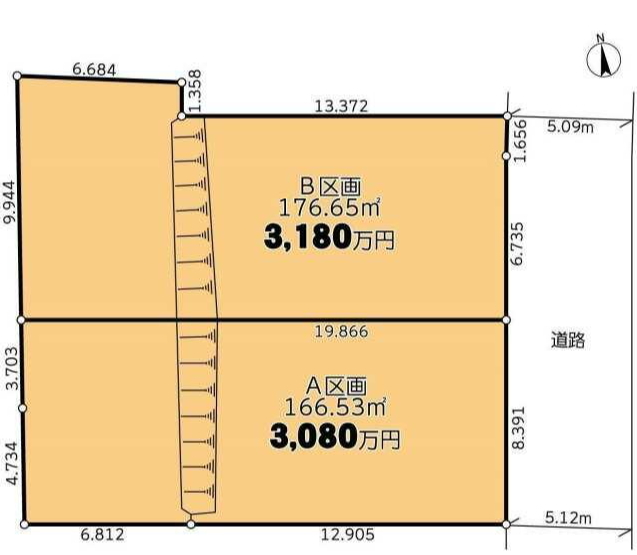 ■土地面積/A区画→166.53㎡ B区画→176.65㎡