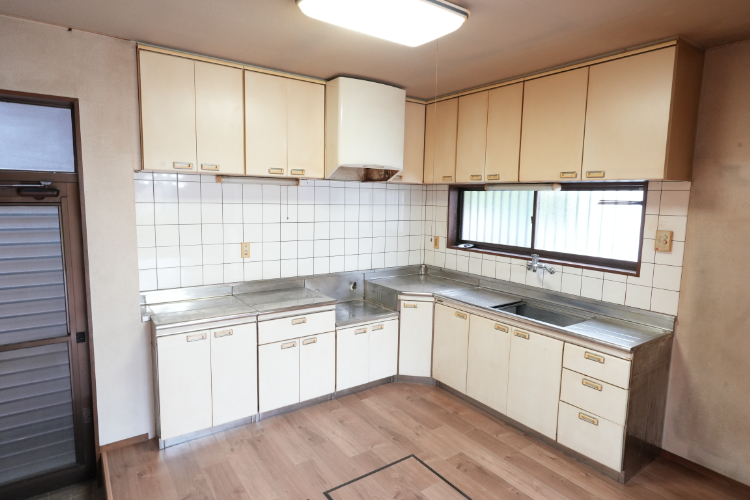 キッチンスペースは、作業動線の良いL字型レイアウト。シンクとコンロ、作業台の距離が近く、調理や片付けがスムーズに行えます。