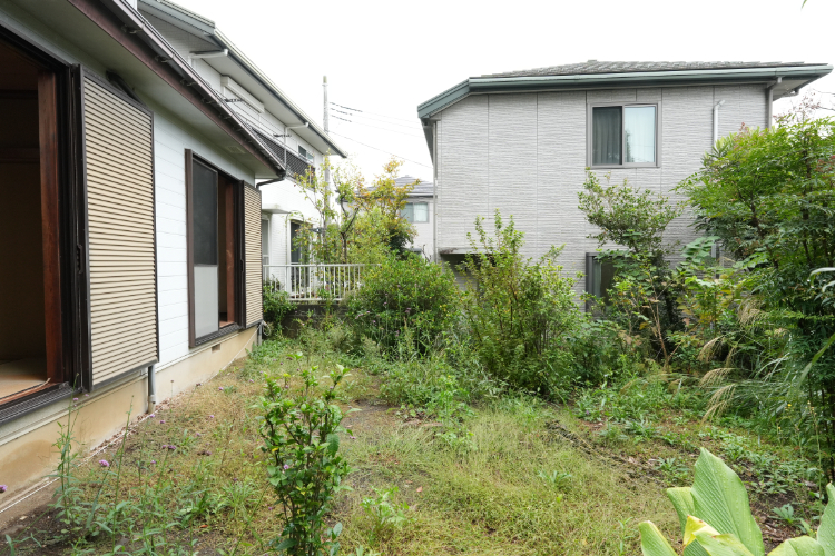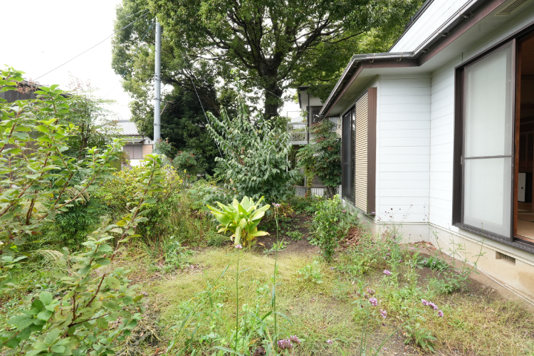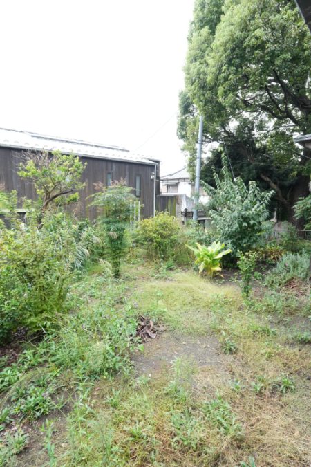 敷地の南側には、日当たりの良い庭スペースがあります。今は少し草が伸びていますが、整えるだけで立派な家庭菜園エリアに。