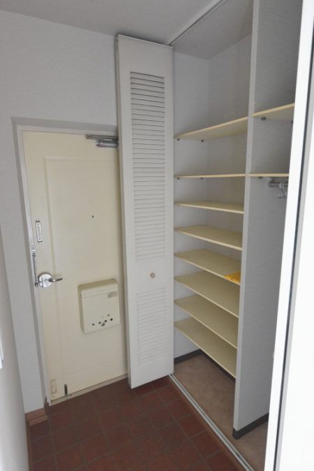 大容量シューズクローク。棚が多段で設けられており、靴だけでなくアウトドア用品や掃除道具なども収納可能。