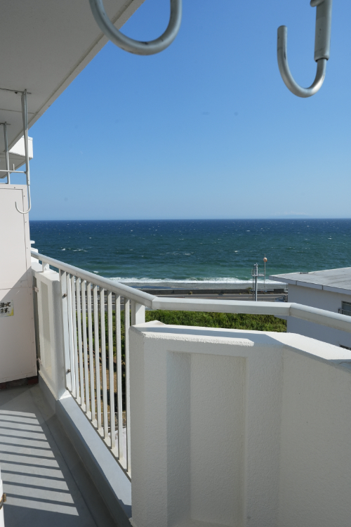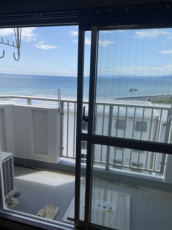バルコニーから南側の景色。こんなに海が近いのです。海の景色って、毎日異なるので飽きる事がないのです。